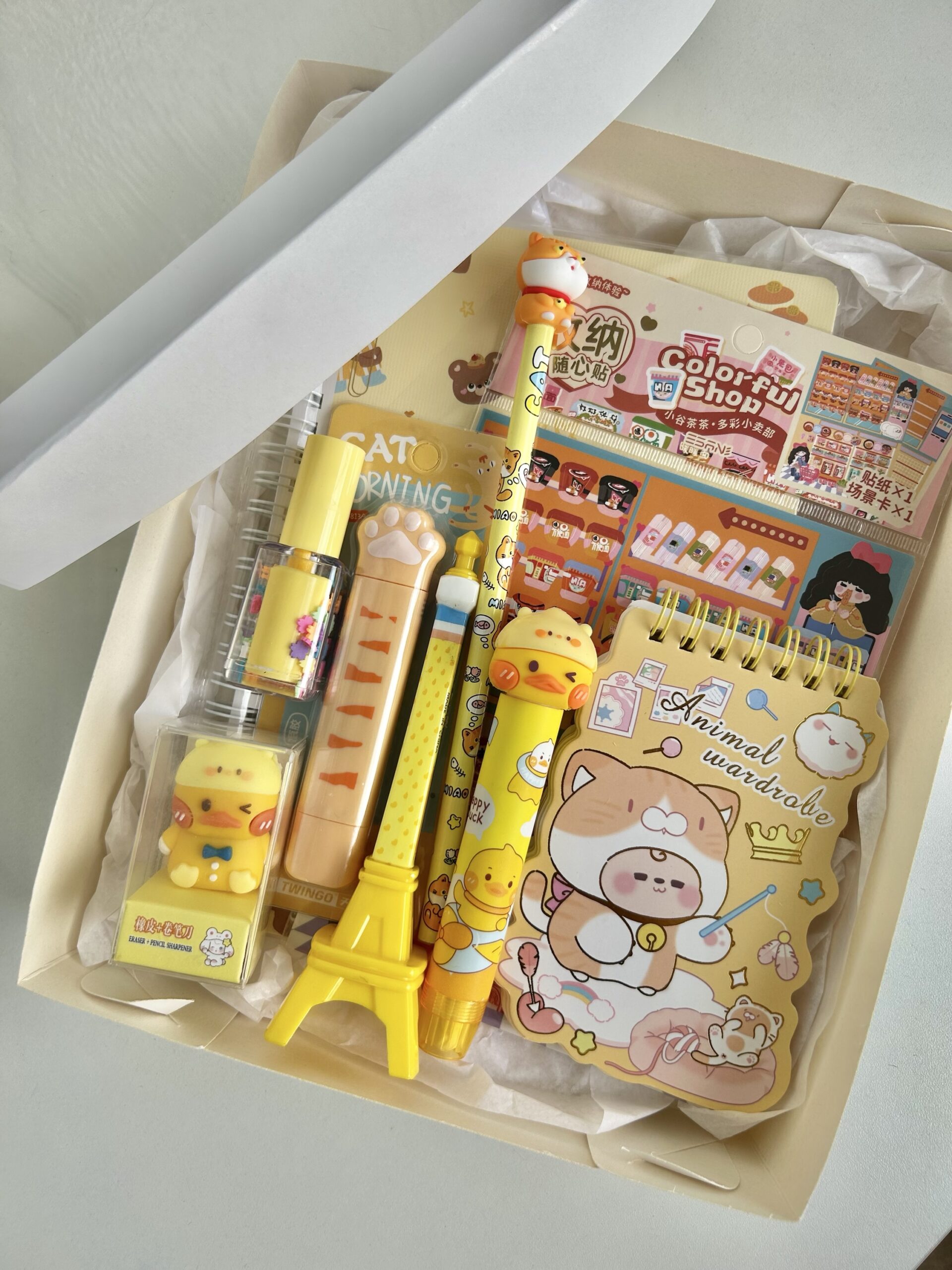 🌈 Cada box vem recheada de produtos de papelaria criativa e acessórios colecionáveis, perfeitos para quem ama organização, fofura e cores que enchem os olhos.