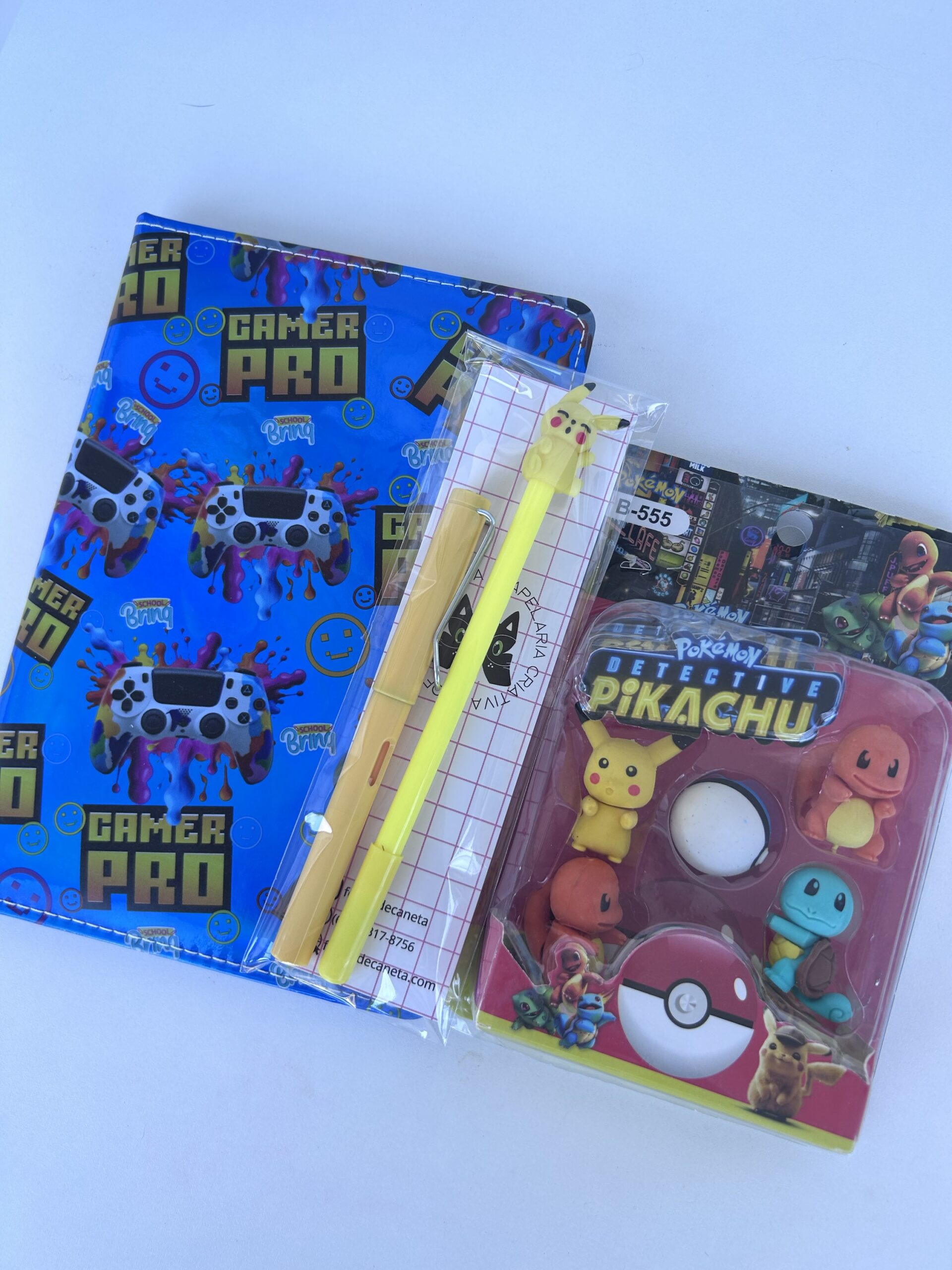*Contém:* caderno pautado, kit borracha (6und), lápis infinito e caneta fofa.