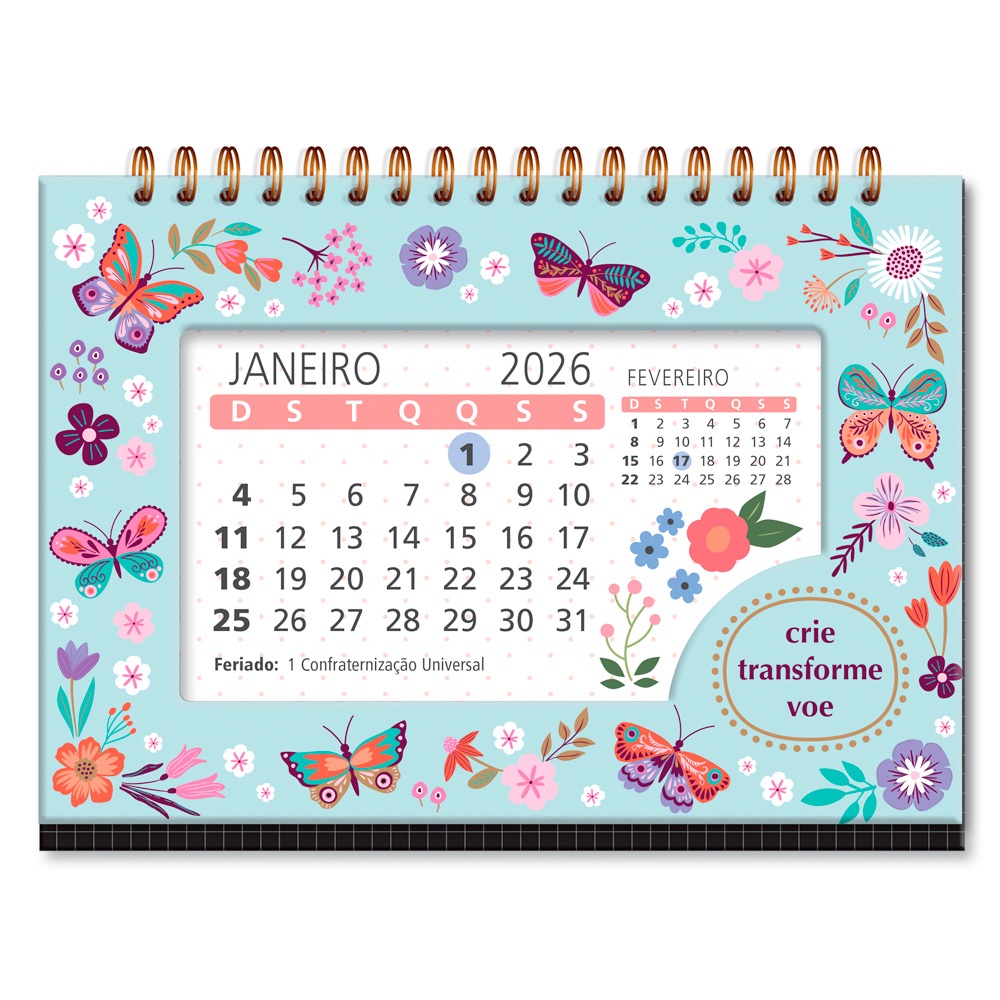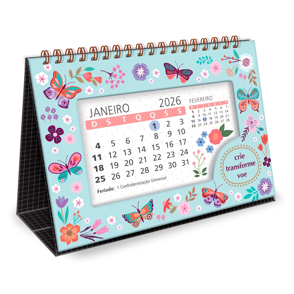 Calendário de Mesa 2026 Borboletas no Jardim Fina Ideia 18,5x13cm