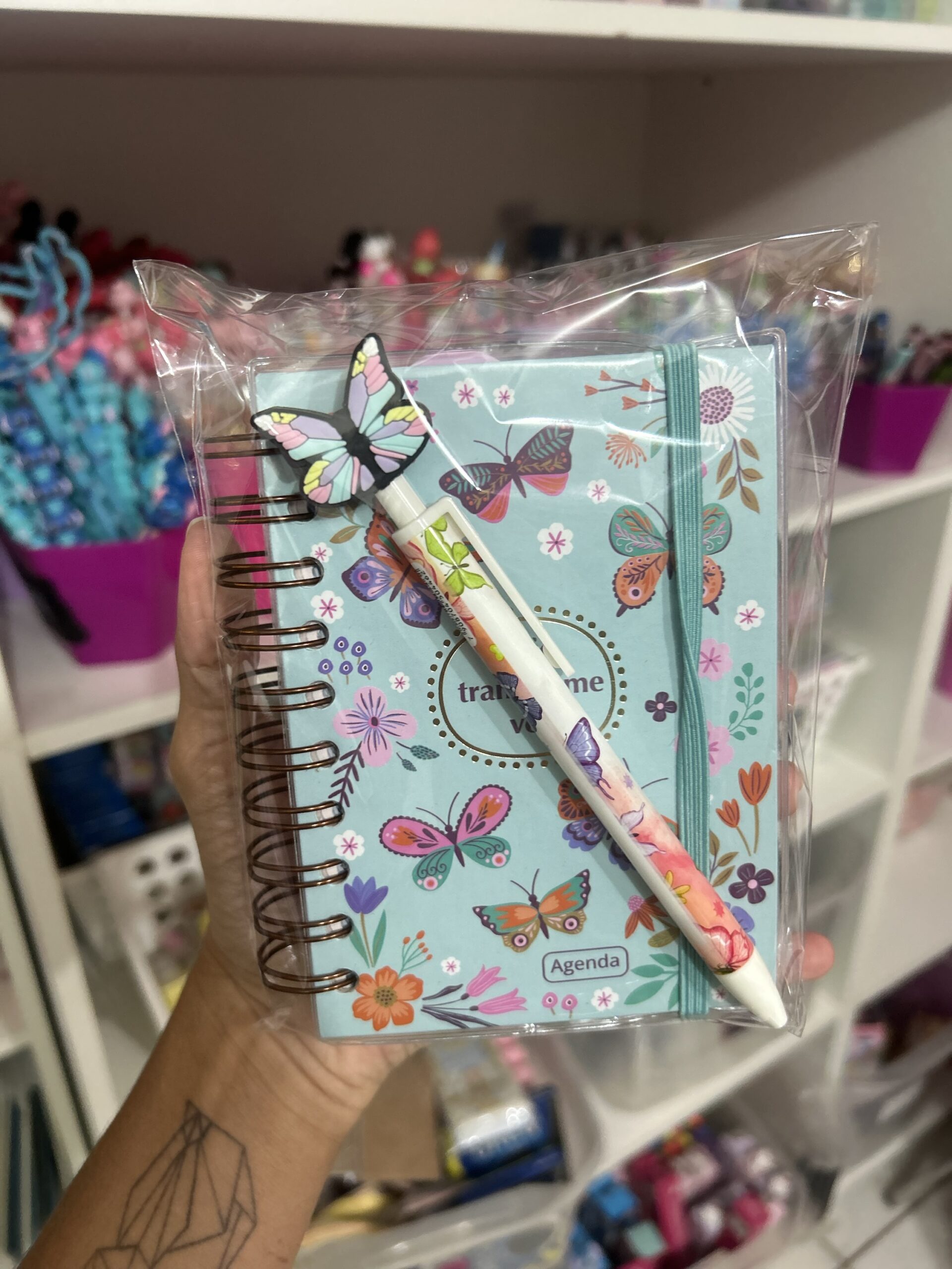 *DUPLA AGENDA DIÁRIA + LAPISEIRA BORBOLETA