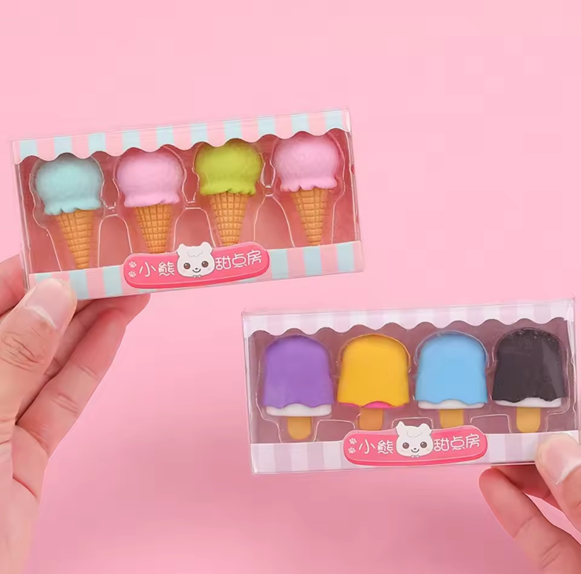 Se você adora produtos fofos e funcionais, este kit de borrachas doces e sorvete é a opção perfeita para dar um toque criativo e divertido ao seu material escolar! ✨