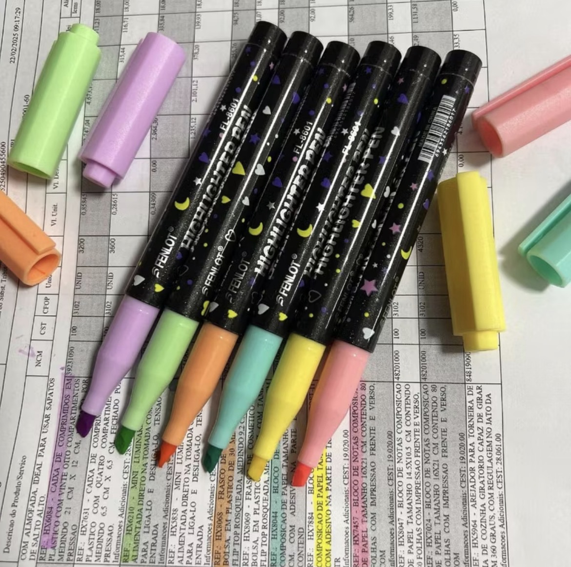 Adicione um charme especial às suas anotações com este kit de marca texto dual! Com 6 canetas em neon. Ideal para quem aprecia mais cores e funcionalidade em seus estudos e projetos! 📚✨
