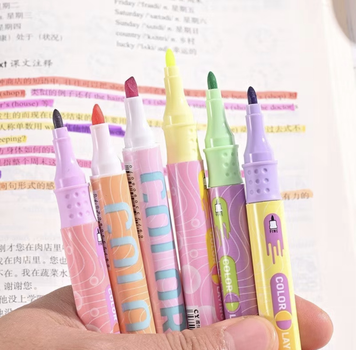 Adicione um charme especial às suas anotações com este kit de marca texto dual! Com 6 canetas em neon, cada caneta possui duas pontas: possibilidade a cartela de 12 cores diferentes. Ideal para quem aprecia mais cores e funcionalidade em seus estudos e projetos! 🐾📚✨