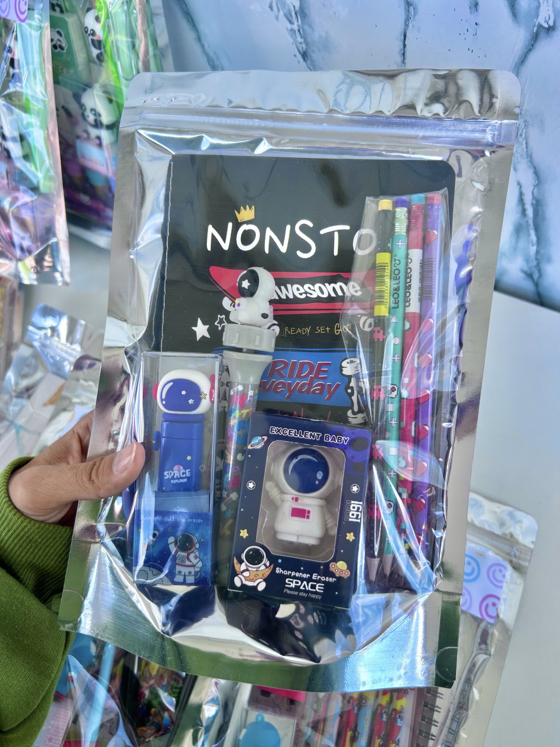 Que tal encantar com um “pacote astronauta” recheado de fofuras pra encantar a criançada (e adultos também). Esse kits está super fofo e contém itens super criativos e divertidos.
