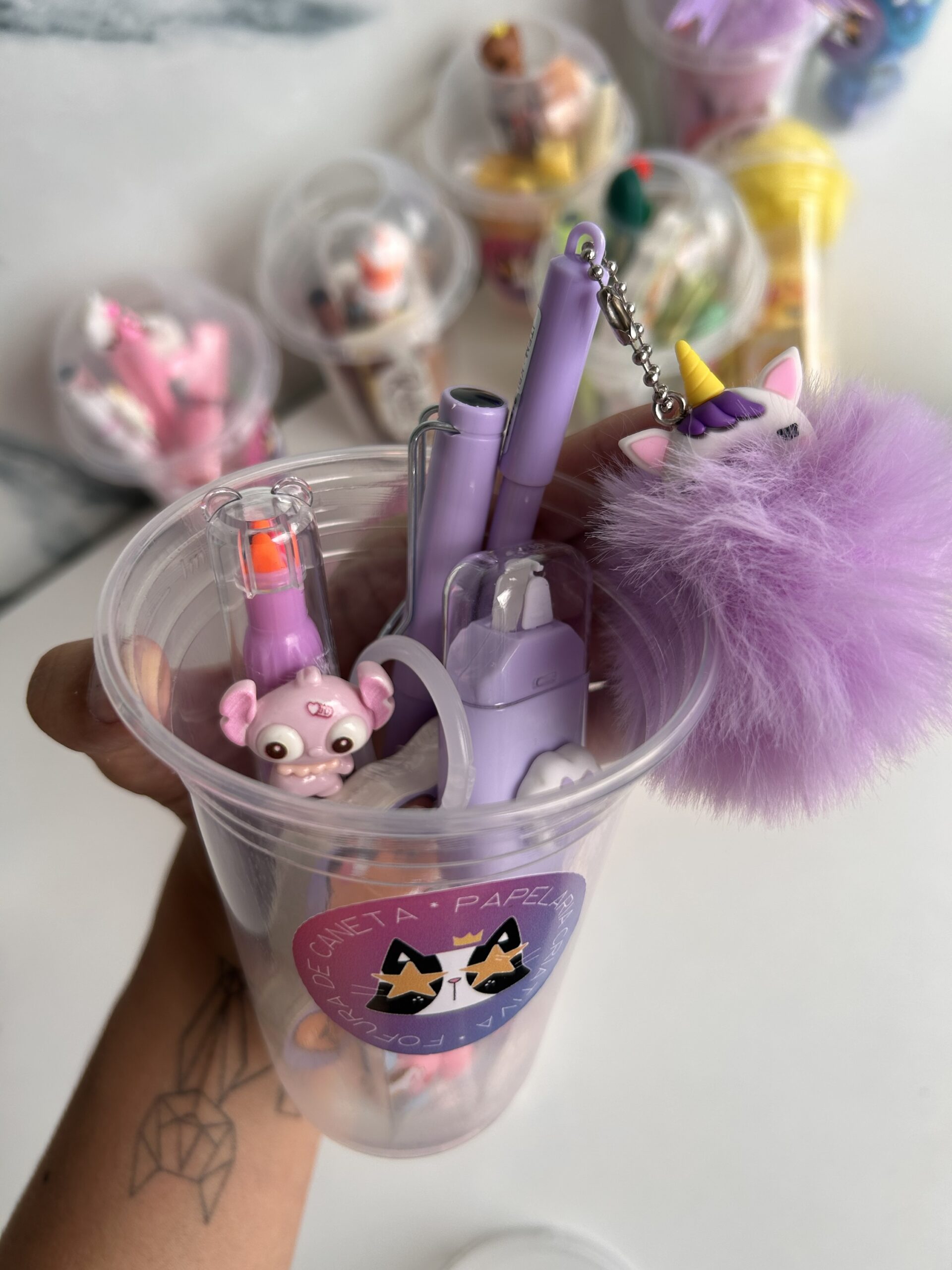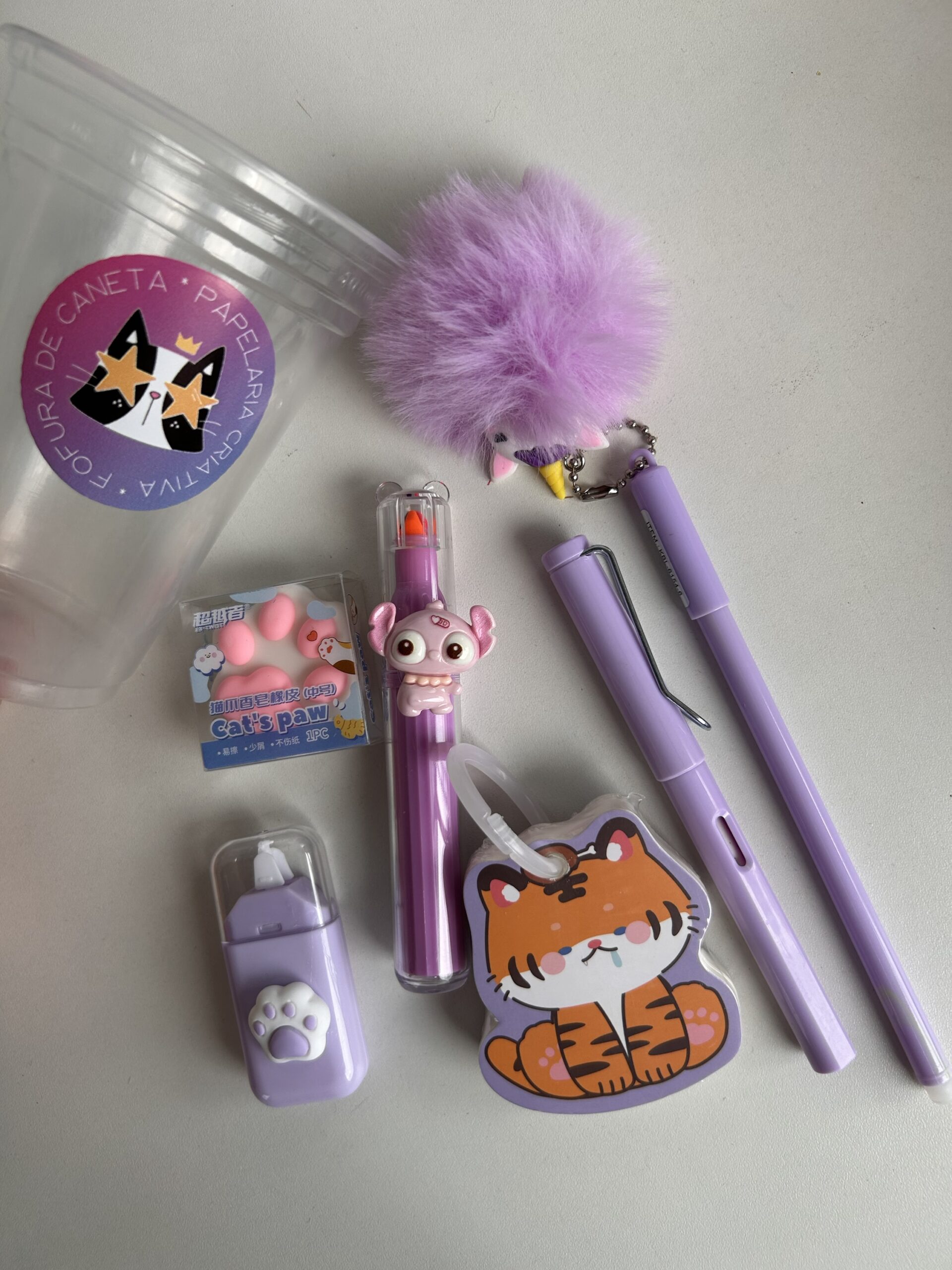 Um copo recheado de papelaria fofa combinadinha, para alegrar sua rotina de estudos e trabalho.