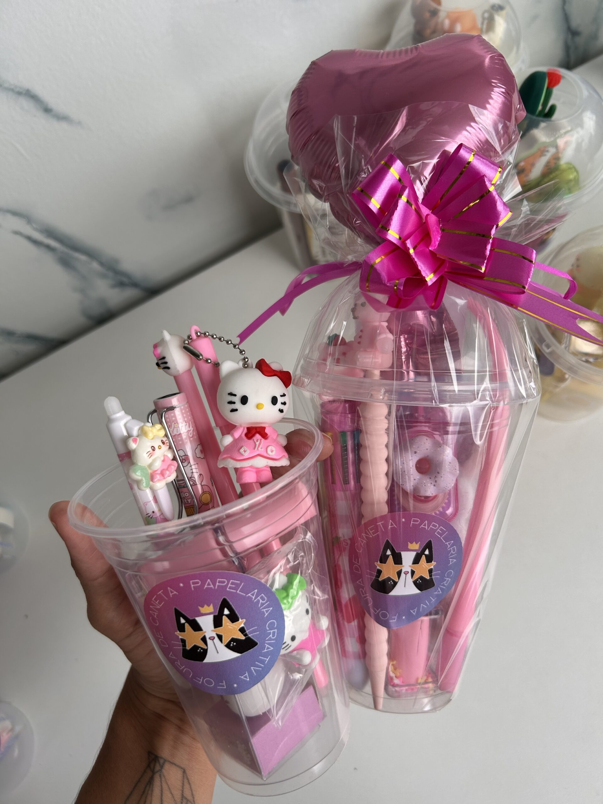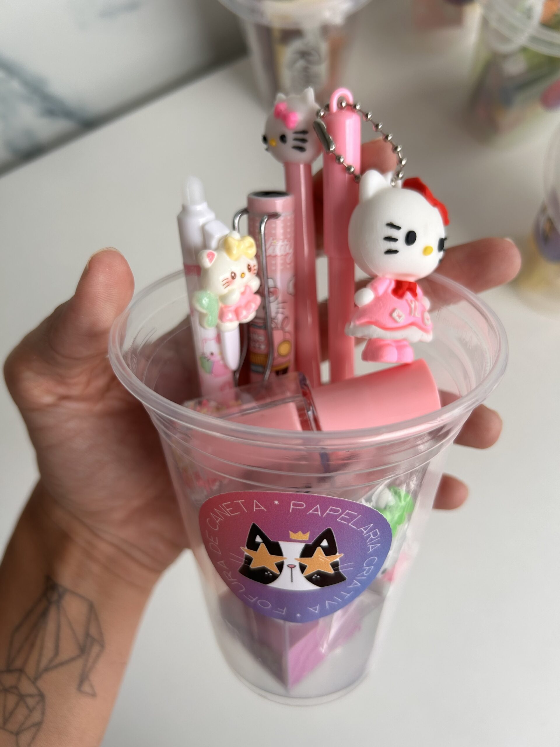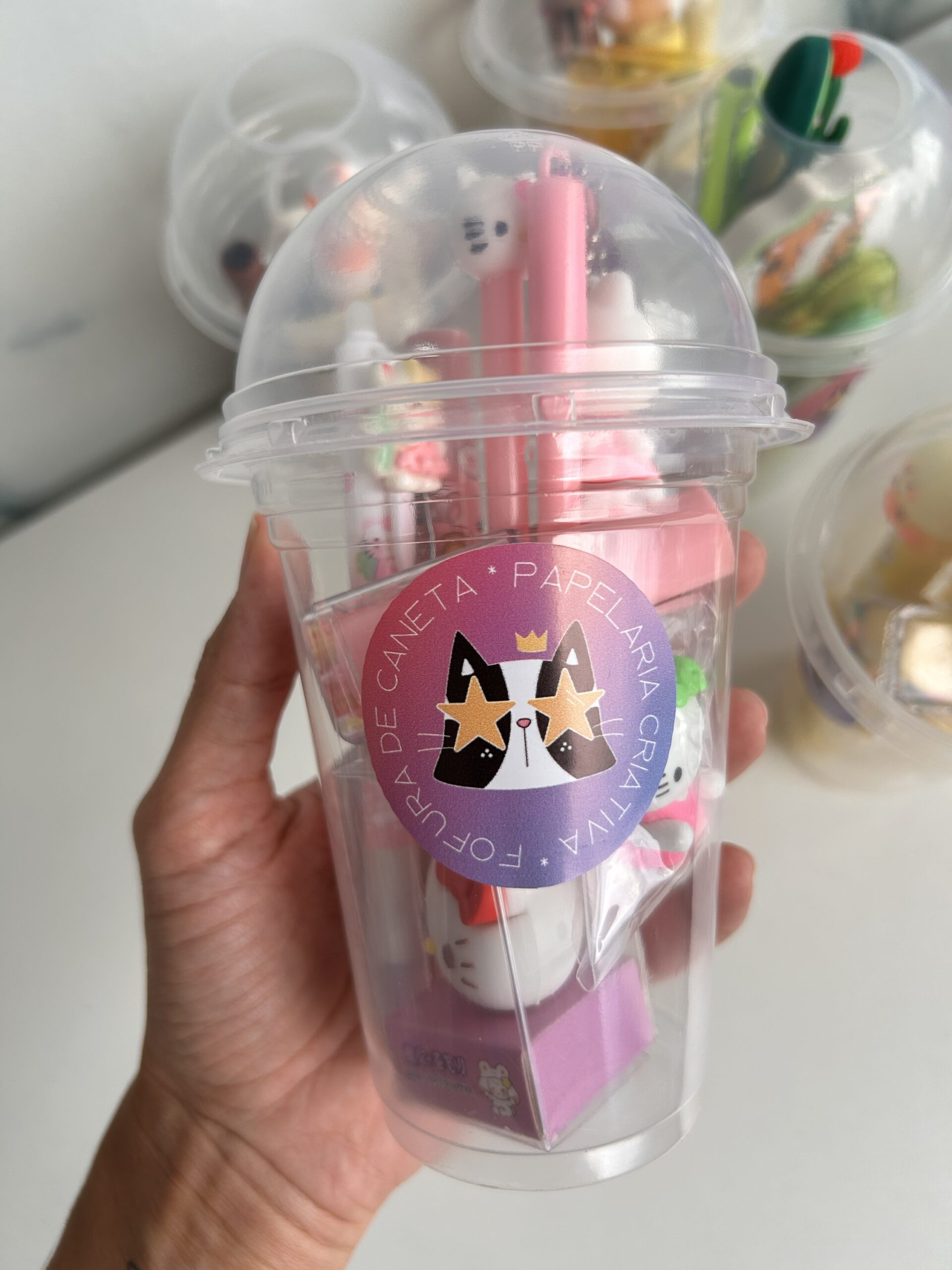 Um copo recheado de papelaria fofa combinadinha, para alegrar sua rotina de estudos e trabalho.